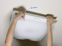 私の場合、過去のレビューで何度もシーリングライトの着脱をやったことがあるため、取り付けは数分で終わるほど簡単だった。しかし、上を向きながらカバーのバネを取り付けたり、カバーを支えながらレバーで固定したりなどの作業は、不慣れな人は手こずるかもしれないと感じた。