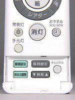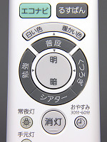 この環境設定はとても簡単だ。外光の無い夜間、リモコンの中央にある「普段」ボタンを押して、器具を点灯する。次に、器具から2m以上離れ、リモコンの下部のフタを開け、緑色の「環境設定ボタン」を押す。設定はこれだけで終了。それ以外のボタンに触れる必要は無く、20秒以内で終わってしまうあっけないものだった。設定は主電源を切っても記憶され、家具のレイアウト、カーテンやじゅうたんなどを変えない限り、再設定はいらない。