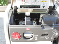 | 本体各部に手順の番号が印刷されているので、操作に迷うこともないだろう | スターターレバーを引っ張るとエンジンがかかる |