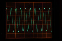| 波形をさらに拡大。写真はコンセントの波形。なお、これ以降の写真はすべて50Hzのもの | エネポの波形。やっぱりキレイ |