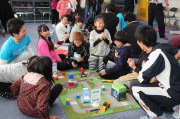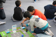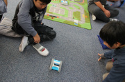 最後に行なわれたゲームでは、教室内に置かれた障害物を避けてスタートからゴールまでRomoを動かすというもの。障害物に当たらなければOKというルールのもと、Romoを思い思いに設定して動かす。