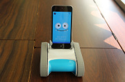Romoは、iPhoneなどiOS端末と接続して動く知育ロボット。本体はキャタピラー型で、iPhoneアプリ上で「前に進む」「回転する」などの操作を設定するとRomoが動く仕組み。アプリがロボットの脳となり、Romoに連続した操作を覚えさせることで手軽にプログラミングが学べるという。