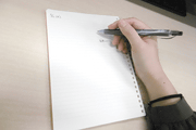 まず驚いたのが、リングのやわらかさ。コクヨ独自開発の「やわらかリング」を採用しており、フニャフニャとした感触が気持ちいい。ページを折り返して使っても、リングが当たる感触は全くない。リングに近い部分も文字を書きやすいので、ストレスフリーで筆記できた。