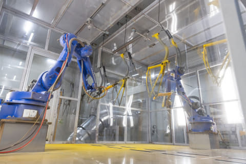 3. 粉体塗装設備:再利用可能な粉体塗料の採用によりVOC(揮発性有機化合物)排出ゼロ化を実現。また、1コート塗装での外観品位の実現など高い技術力による工程合理化も実現