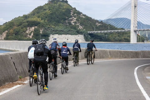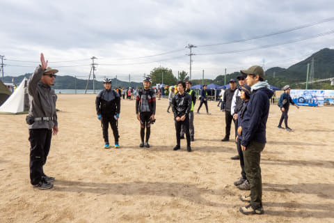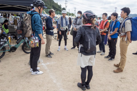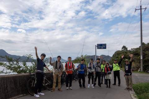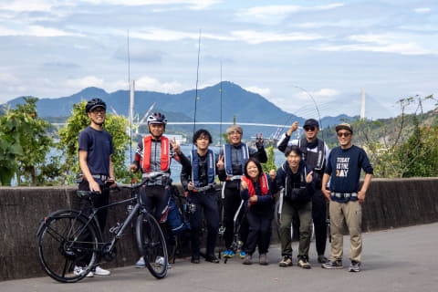 午前・午後それぞれ「RIDE&FISH」(各回6名)があっという間に満員御礼となりましたが、参加者のほとんどは自転車が大好き、でも釣りは初体験。自転車が大好きゆえに、自転車×釣りというコンテンツを楽しそうだと思ったそうです。我々は東京から上島町に向かいましたが、関西方面などの参加者が中心なのかと思っていたところ、夫婦で埼玉からやってきた夫婦(e-bikeレンタル)、京都から福知山まで愛車を輪行してきた大学生グループなど、さまざまな自転車好きが集まっていました。