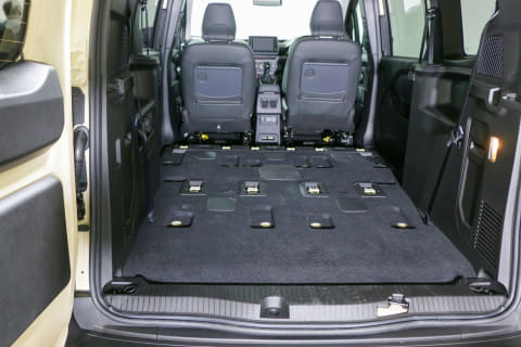 2列目のシートを完全に外した状態にもしてみました。シートの取り付け部が多少でこぼこしていますが、基本はフラットな状態なので自転車は積みやすく、マットを敷けば車中泊も快適そうです。e-bikeを積んで車中泊旅に出掛けるというのもワクワクします。