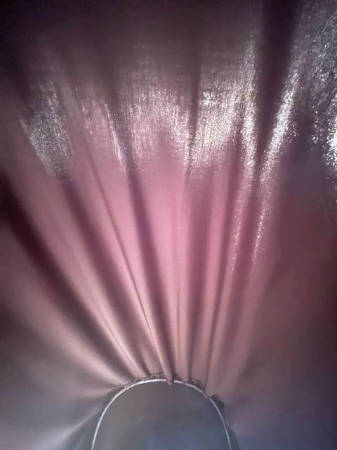 昭和の時代にあった「かいまき布団」をグッと未来的にしたようなこの服は、びっくりするほどふかふかでやわらかく、かつ軽いのが特徴。袖、裾のドローコード、抱きタブから着圧を調整することで、個人に合った寝やすさになる仕組みです。横になってみるとヘッドピースに組み込まれたヘッドフォンからは入眠しやすい周波数帯域の音楽(2種類あり)が流れ、目をつぶると何となく赤いような光に照らされていることがわかります。