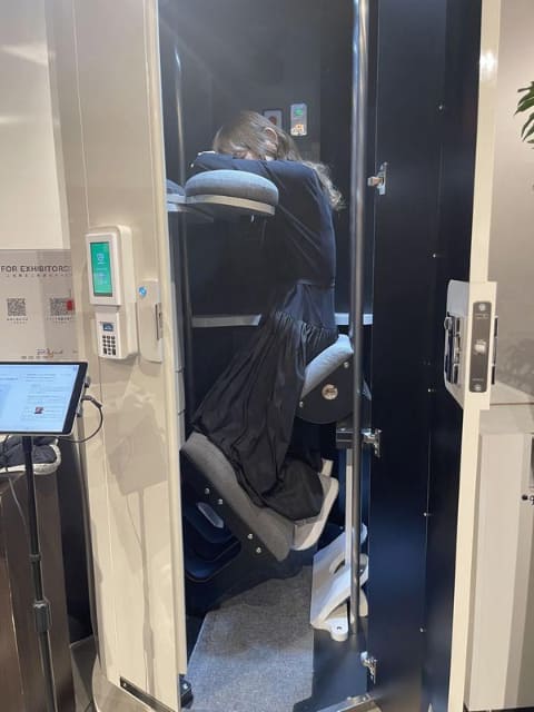 昼食後もお腹を圧迫されることなく、重力から解放されて眠れるという説明に「それはいいですね!」と思ったものの……今回、扉を開けたままでの体験だったのでよかったのですが、もしかすると閉所恐怖症気味の方(筆者もそうです)には少し厳しいところがあるかもしれません。