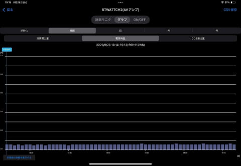 使ってすぐに便利さを実感しました。もし画面が本体にあったら、天井付近にあるワットチェッカーを見に行かないといけませんし、筆者の環境では、おそらく画面も見えたかどうか怪しいところ。しかし、アプリなら見やすい表示と、豊富な情報量で利便性も抜群です。