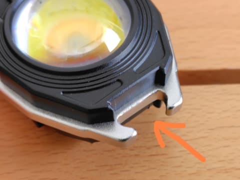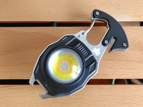 本品を細かく見ていくと、冒頭で紹介した6つの機能(ライト・着火・ドライバー・カッター・栓抜き・ホイッスル)がうまく配置されていることがわかりました。