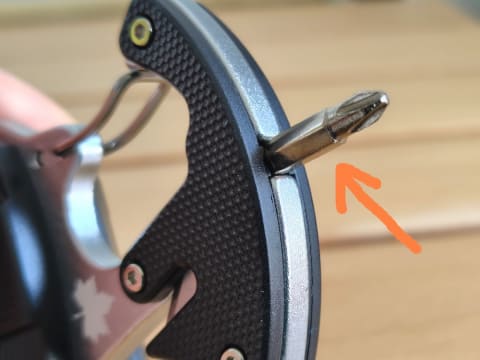 ドライバーはプラス・マイナスの2種類が揃っており、背面カバーに収納されています。使用の際は、プラスあるいはマイナスドライバーのどちらかを本体上部に取り付けます。ドライバーはマグネットによって軽く固定されますが、がっちりはまっているわけではないので、ヘビーな使い方には向かないかもしれません。