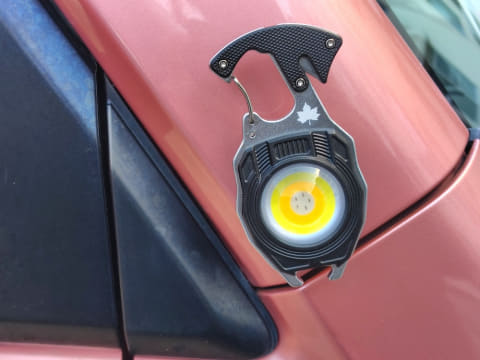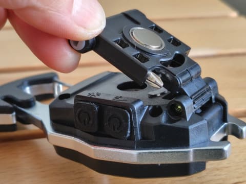 これらのほか、本ツールにはカラビナやマグネット(背面)も搭載されています。バックパック、リュック、ベルトループに引っ掛けられるほか、スチール面にペタッと貼り付けられるのも便利です。