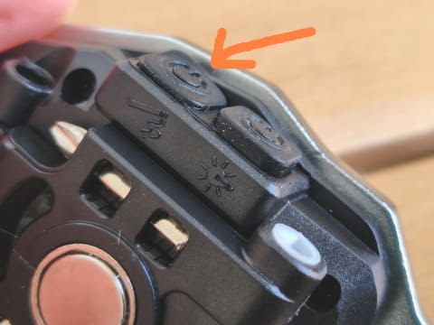 ライトは単色ではなく、白色・暖色・赤色の3つの点灯モードを切り替えて使用できます。本体側面の着火用電源ボタンの隣に配置された、ライト用の電源ボタンを押すと点灯し、以後ボタンを押すたびに、白色(強)→白色(弱)→暖色(強)→暖色(弱)→赤色(点灯)→赤色(点滅)→消灯の順にモードが切り替わります。
