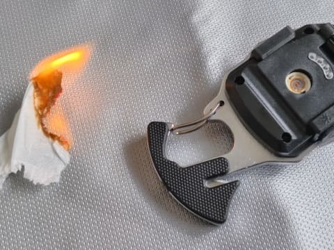 また、小さくちぎったティッシュペーパーは、2回目で着火に成功し、いったん火がつくとよく燃えました。太い枝や薪などには着火できないものの、これだけの性能があれば、うっかりライターを忘れてしまっても、いざというときに心強いと思いました。