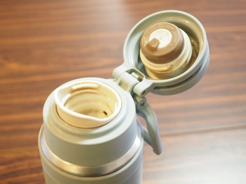 「JOY-750」のフタは、少し回すだけで開けられる。スクリュー式だけれど、何度も回す必要がなく開けやすい。水筒を急に傾けてもドバッと中身が流れ出さない飲み口もちょうど良い。水筒の底部にはラバー製のカバーがあるため、テーブルの上に置く際に静かなのも気に入っている。そうした点は、オフィスでの利用にもおすすめしたい。