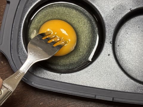 フライパンを使うよりも短時間で焼けますし、水を加えて蒸す工程も不要。できあがりは丸くてコンパクトなので、お弁当やガパオライスなどへのトッピング、以前に作った「ソーセージエッグマフィン」のようなバーガーの具にもぴったりです。