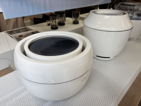 ここまで来ると、デザイン家電というよりアートだよなと思いつつ、下世話な興味でどこの部品にいちばんコストがかかっているか聞いてみました。答えは、精密に研磨されたガラス。1つ60万円の見積もりを出してきたメーカーさんもあったほど難しい加工だそうです。それを知ったら、55万円という価格も納得じゃないでしょうか。仮に自分の収入が今の100倍あったら、5,500円の感覚なので、即買うでしょうね。使う用と保管用の2個買うかもしれない。アートと妄想、言うだけは自由です。