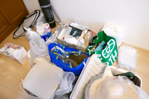 整理収納の基本は「全出し」。収納に入っているモノをすべて出します。持ち物をすべて把握し、今の自分に必要なモノを選び取るための重要な工程です。