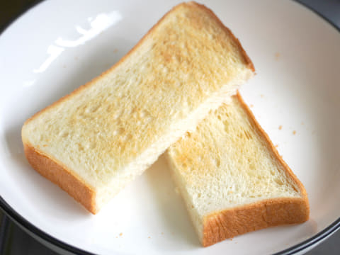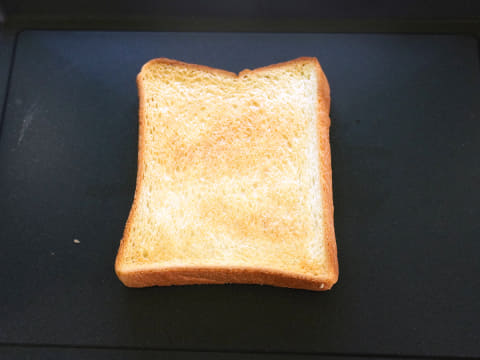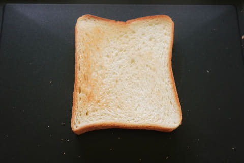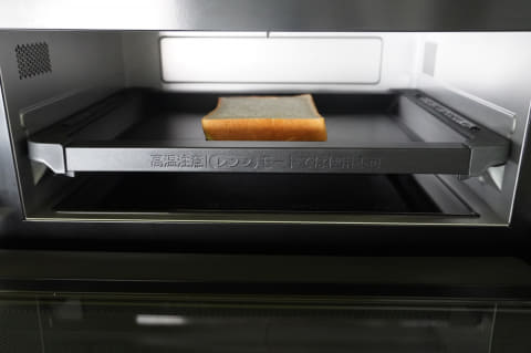 トーストモードは素早く庫内の温度を上げ、マイクロ波でグリルプレートを高温にし、上下から加熱して食パンを焼くモードです。今回は4分加熱しました(レシピでは3~5分)。
