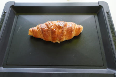 パンのリベイクモードも試しました。パンリベイクモードは、冷めてしまったクロワッサンや惣菜パンなどを再加熱するための機能です。クロワッサンのリベイクは4分(レシピでは3~5分)。ふんわりと、中まで温かく加熱することができました。表面はもう少しハリや食感が欲しいところですが、焦げずに中まで温められるのは嬉しいですね。