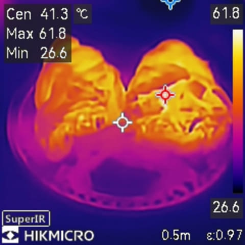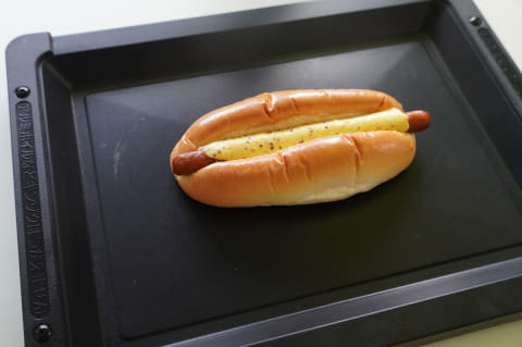 コンビニなどでよく売っているソーセージパンを6分リベイクしたところ、パン部分がふわふわでちょうどよい温かさでした。ただ、ソーセージは加熱されているもののアツアツではなく、少々物足りない印象です。
