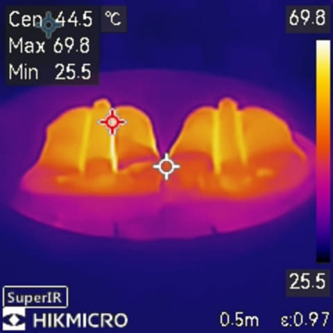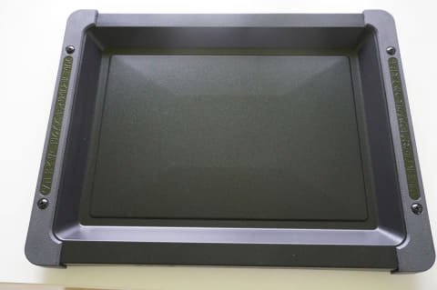 もうひとつのポイントは、グリルプレートです。このグリルプレートは、電子レンジのマイクロ波で底面を発熱させることができます。特殊な発熱体が貼り付けられており、このグリルプレートが瞬時に加熱されることで、トーストの裏側にも焦げ目がつきます。赤外線を放射する管ヒーターで食材上面を、マイクロ波で発熱するグリルプレートで食材裏面を加熱するので、調理中に途中でひっくり返す必要がありません。