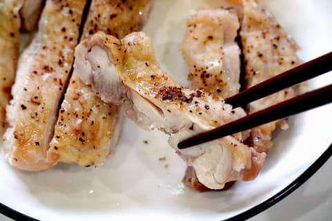 驚いたのは脂がグリルプレートにたくさん溜まっていたことです。グリルプレートは中央が少し高くなっているため、脂が周囲に落ちて溜まります。そのため、鶏肉は脂っぽさがありませんでした。