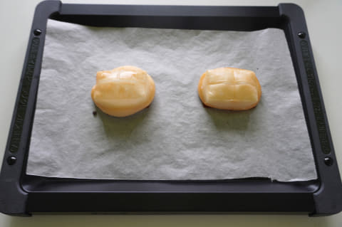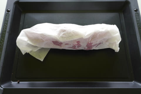 焼き芋に挑戦です。さつまいもは皮をつけたまま洗い、拭かずにクッキングシートで包みました。その後、グリル皿の中央に寄せて横向きに並べ、グリル(弱)で60分間焼きました(レシピでは58~60分)。