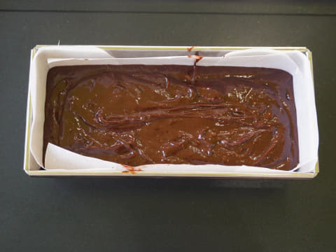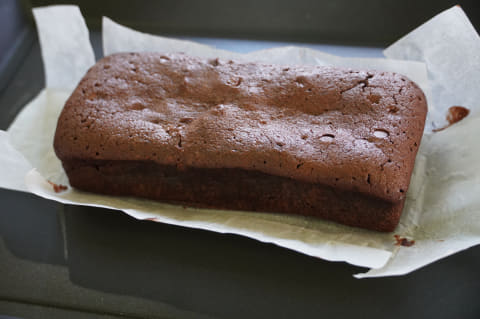 小麦粉、ココアパウダー、チョコレート、無塩バターなどの材料を混ぜます。工程に関しては一般的な作り方と同じです。調理時間は予熱5分後、グリル(弱)で34分加熱してみました(レシピでは32~34分)。