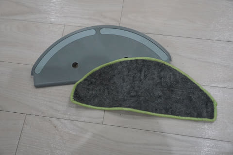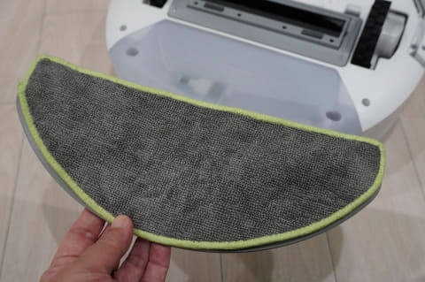 一方、105は水タンクと着脱式のマイクロファイバーモップパッドで水拭きを行ないます。吸引掃除のみの場合はモップパッドを外し、水拭きする際に取り付けて使用します。吸引のみ、水拭きのみ、吸引+水拭きが選べますが、705のようにモップを自動で洗浄・乾燥する機能はないため、掃除のたびに手で洗います。