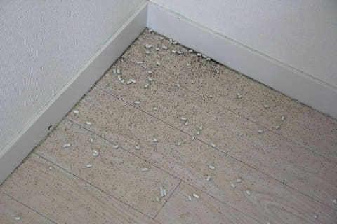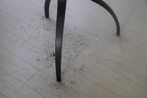 試しに砂やペットのトイレ砂を落としておきましたが、吸引+水拭きできれいになりました。細い脚のサイドテーブル下も、705は脚を検知してスムーズに掃除。105は少しぶつかりながらもゴミを取り除きます。
