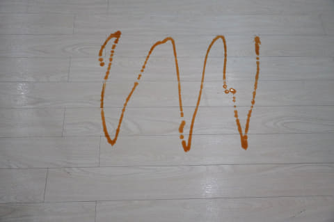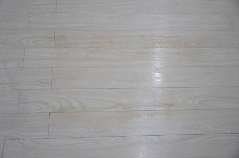 広い範囲に醤油をたらして、水拭き性能をチェックしてみました。705は、一度通るだけでもキレイに拭き取り、筋も残りません。モップを洗浄しながら掃除を続ける705は、液体汚れも得意です。