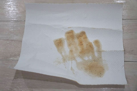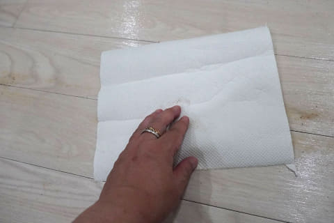 水拭き終了後に、醤油をたらした場所をキッチンペーパーで拭き取ってると、705はキッチンペーパーに何もつきませんでしたが、105は醤油がしっかりついてしまいました。