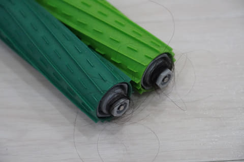 一方、105は「毛とゴムのシングルアクションブラシ」を1本だけ搭載しています。毛があるためフローリングの溝に入り込んだゴミを取ることはできますが、705のように2本のブラシで効率よく掃除することはできません。そのため、清掃力は劣ります。