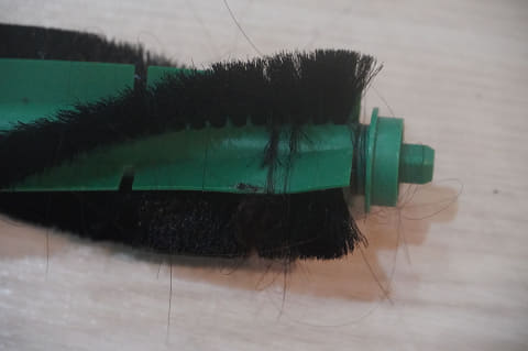 705のデュアルアクションブラシには、髪の毛は一切からまっていません。ただ、外してみると、軸の部分にからんでいました。外からは見えにくい場所なので、数回に1度はチェックしたほうがよさそうです。ローラーモップにも、髪の毛が少しついていました。デュアルアクションブラシを外した本体部分は砂やホコリが少々ある状態でしたが、構造がシンプルなので、すぐにお手入れも終わりました。