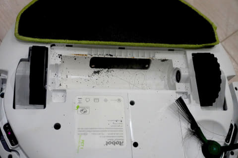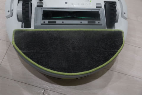 しっかり掃除したいなら、本体を前後しながら水拭きする「スマートスクラブ」に設定するとよさそうですが、705のようにモップを洗いながら拭き掃除をするわけではありません。そのため、ひどい液体汚れを拭き取るという掃除に関しては、効果は限定的になりそうです。