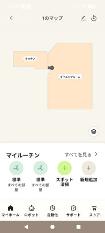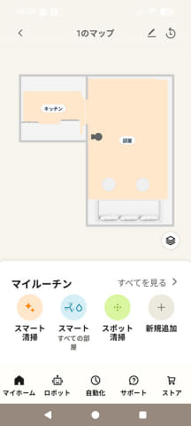 アプリは705と105で共通なので、マップ作成の手順は同じ。ただし、705は高機能なためアプリのメニューが多く、「スマート清掃」があります。これはAIやセンサーを使って効率的に掃除する仕組みで、無駄なく掃除できます。