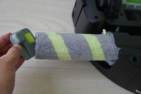 ただ、前方のセンサーがフローリングに着地したと判断すると、後ろのローラーモップが動き始めてカーペットをこすってしまうことがありました。フローリングを検知した後に、1秒ほど待ってからローラーモップを回転させてほしいところです。