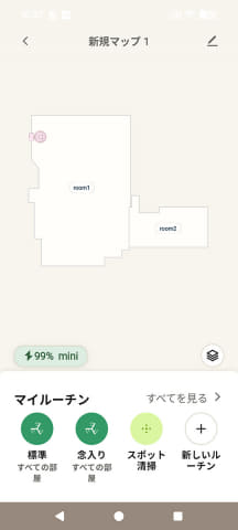 マップは上位モデルと比較すると簡易的ではありますが、機能そのものがシンプルなので、特に不満はありません。初心者でも迷わず操作できそうです。部屋ごとに吸引の強弱を変えたり、掃除回数を指定したり、エリア指定などもアプリで簡単にできました。