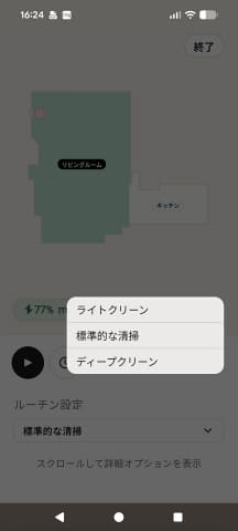 アプリを操作し、掃除を開始。家具が多く、ゴチャゴチャしているリビング+キッチンの約17畳は、30分で掃除が完了。本体が小さいため、広いところは行ったり来たりする回数が多い印象ですが、狭いところまで入り込んでくれるのは、このサイズ感でしかできないことです。