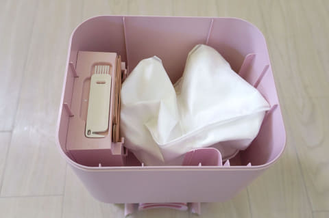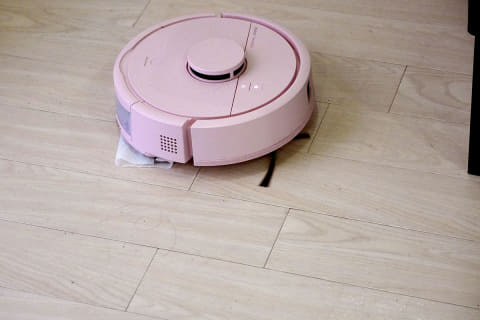 カラーバリエーションも今回の目玉のひとつです。「白(SHIRO)」「黒(KURO)」のほか、「桜(SAKURA)」と「若葉(WAKABA)」の4色から選ぶことができます。今回お借りしたのは「桜(SAKURA)」ですが、やさしいピンク色でときめいてしまいました。派手なピンクではないので、インテリアにも馴染みます。ロボット掃除機ではとてもめずらしいカラーです。