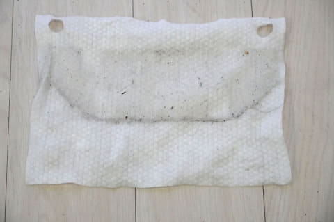 水拭き終了後は使い捨てシートを外して捨てるだけなので、上位モデルのように汚水を捨てる手間はありません。掃除後の使い捨てシートは黒くなっていました。