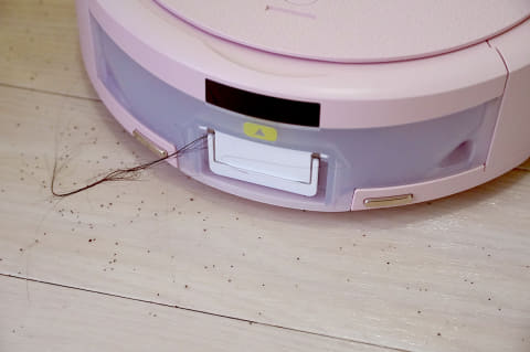 ただし、ひとつ気になった点がありました。ゴミを吸い上げる際に、本体の接続口に髪の毛が引っかかってしまうのか、外に飛び出していることがたまにあり、定期的に確認する必要がありました。上位モデルではこのようなことはなかっただけに、少々驚きました。価格を抑えたモデルならではのトレードオフと理解しつつも、改善を期待したい部分です。