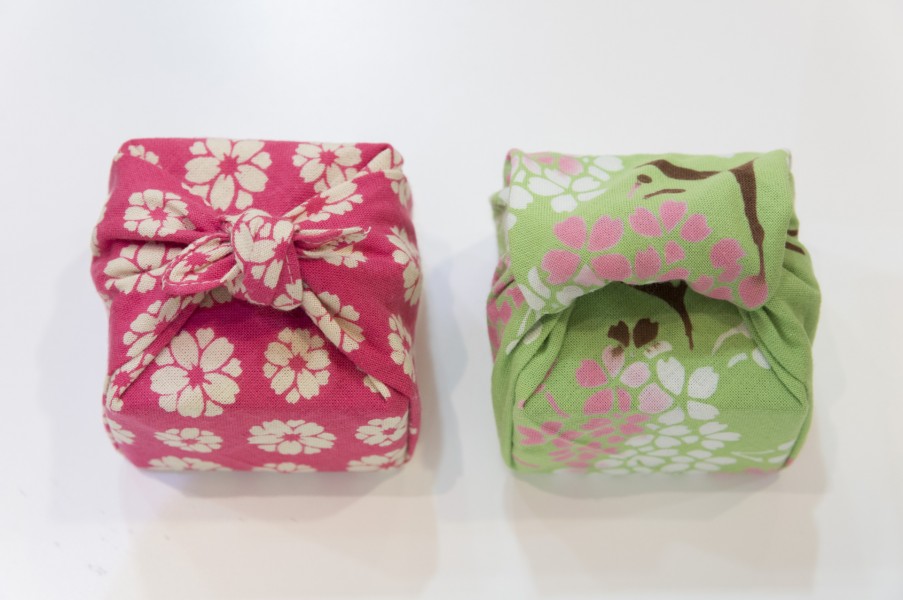 風呂敷は、風呂に入るときに衣類を包んだりその上で着替えをした「平包」と呼ばれるものが起源で、他人の衣類と区別するために家紋が入っていたそうです。風呂敷のサイズは45㎝程度の小さな物から240㎝と大きなものまであり、包むものや用途によって大きさや柄を使い分けます。今回は普段使いに便利でかわいい風呂敷をご紹介します。