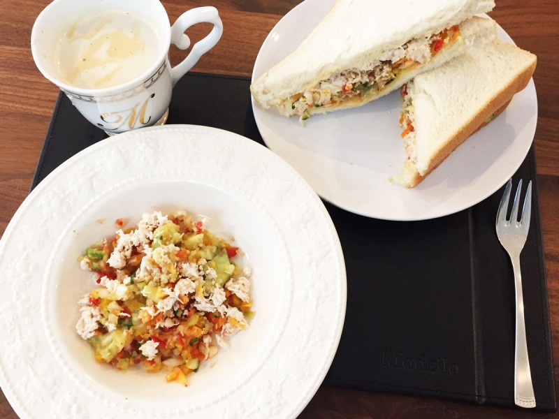 茹でた鶏肉も刻んだ「チョップドサラダ」と「サンドイッチ」