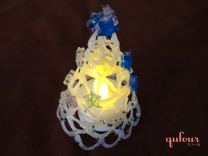 出来上ったクリスマスツリーをLEDのキャンドルライトに被せて完成です。