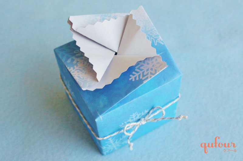 いつもと開け方の違う「ラッピングBOX」は、開けるときにワクワクしますね。今回はフタをねじって開けるラッピングBOX「ツイステッドBOX」の作り方をご紹介しましょう。基本を押さえて、切り方をアレンジすればフタが花びらのように変身。無地の紙で作ってステキに変身させるアイデアもご紹介します。