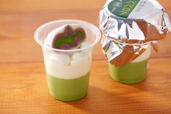 抹茶とミルクの二層ババロアは、トッピングの大福も注目!