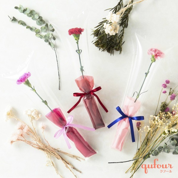 真空バルーンでパックした生花のカーネーションで特別感UP