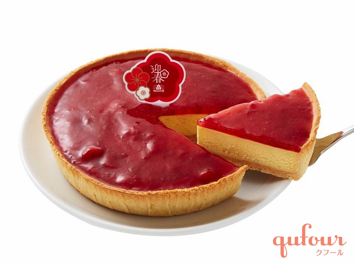 オーストラリア産のクリームチーズにハチミツを加えてしっとり焼き上げたベイクドチーズケーキに、福岡県のブランドイチゴ「あまおういちご」を使用したソースを乗せて仕上げた、新春に食べたい豪華なチーズケーキです。イチゴの赤とチーズの白が、おめでたい紅白の組み合わせを連想させますね。